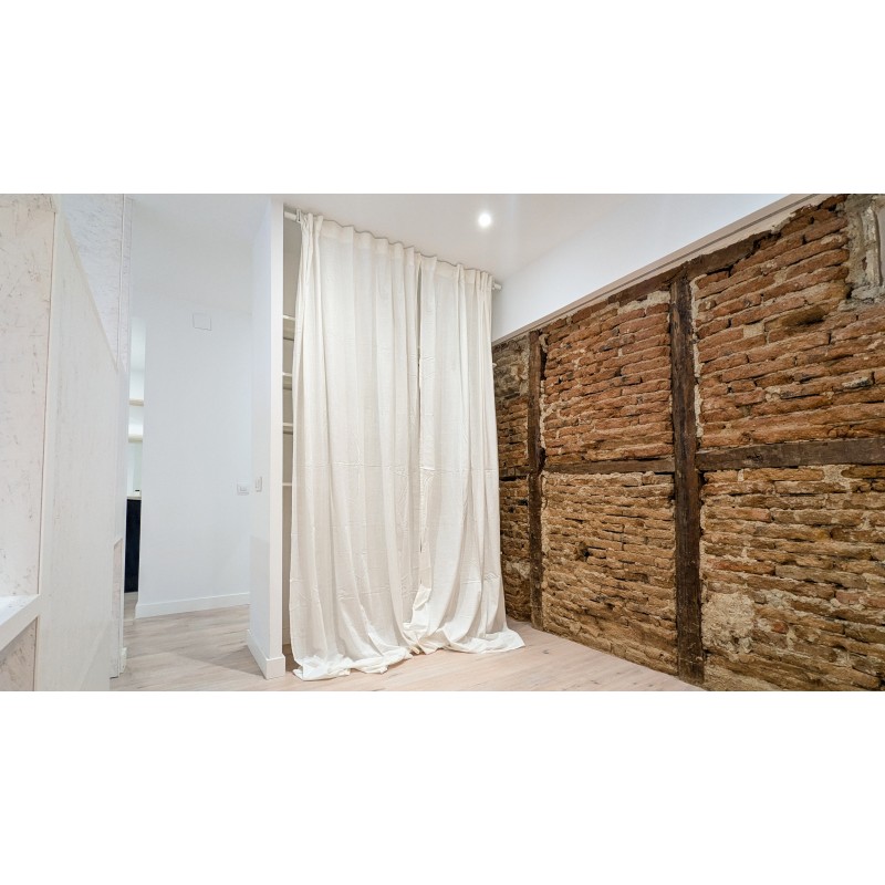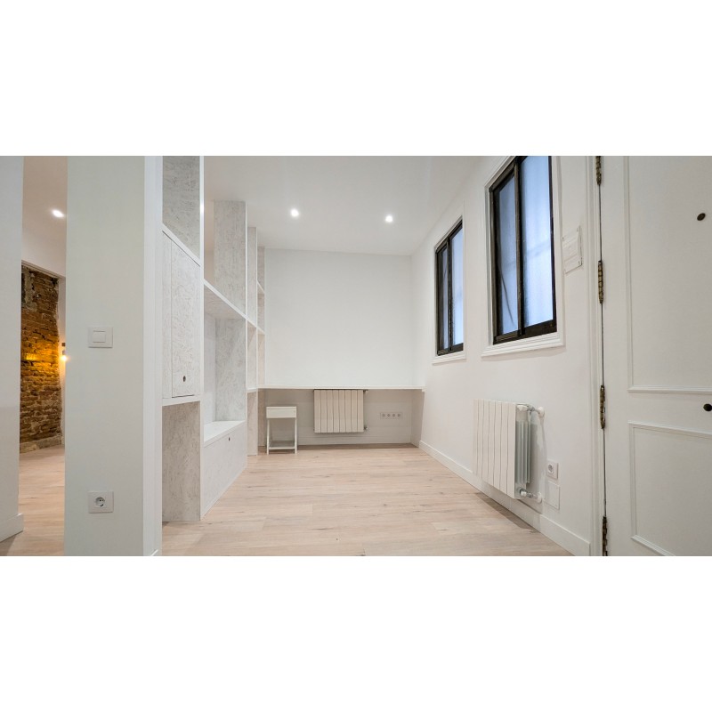 Preciosa vivienda de 38m2 ubicada en una clásica corrala en pleno Alonso Martínez, este piso de un dormitorio ha sido reformado con mimo y ofrece una combinación poco habitual de localización central, calidad arquitectónica y tranquilidad. Diseñado por su propietaria arquitecta, el apartamento destaca por sus líneas limpias, acabados a medida y una orientación este-sureste que garantiza luz natural durante toda la mañana y parte de la tarde.